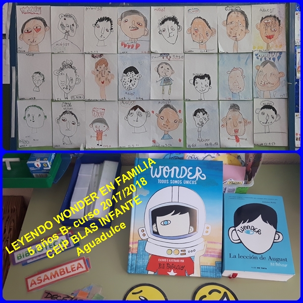 El trabajo con Wonder se ha convertido en un Proyecto de trabajo en el aula y las familias deben estar informadas del mismo y cada cual participa enriqueciendo el proyecto desde sus posibilidades, como dije antes. Así que, nada más llegar en septiembre y a través de la mamá delegada de la clase propuse este maravilloso trabajo a mis familias. Se me ha informado de cómo August se iba colando en sus casas, en sus familias e incluso, algunas de ellas, me mandan fotos y vídeos de momentos de lectura compartidos en casa. ¡Me hace mucha ilusión que mis familias acogieran mis sugerencias con tanto entusiasmo!!