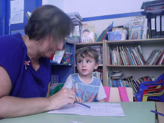 | Paula viene emocionada porque quiere enseñar a sus compañeros de mesa por donde van leyendo en casa su mamá y ella. Su cara lo refleja todo. |